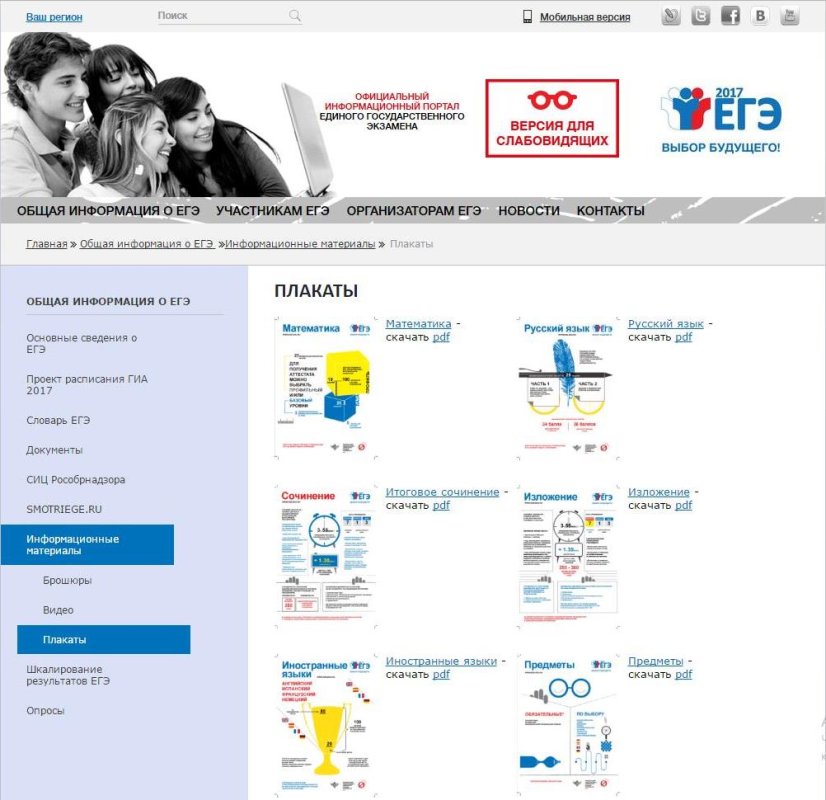 Федеральной службой по надзору в сфере образования и науки разработаны плакаты, информирующие выпускников о различных аспектах единого государственного экзамена (ЕГЭ) и основного государственного экзамена (ОГЭ) 2017 года.