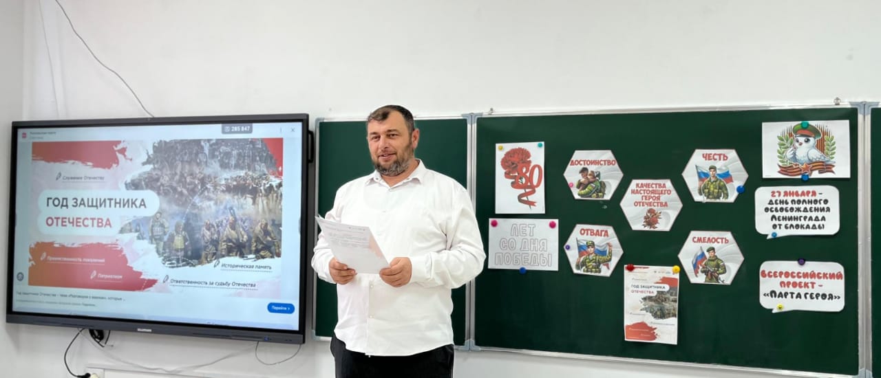 27.01.2025В рамках образовательной программы "Разговоры о важном" в МБОУ"Средне-Курчалинская ООШ" прошел урок,посвященный Году Защитника Отечества. Основной целью урока было формирование у школьников патриотического сознания,уважения к защитникам Отечества и понимания их роли в истории нашей страны.