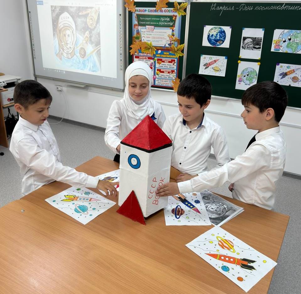Учитель начала классный час с краткого введения в тему,рассказала о значении Дня космонавтики и о том,как 12 апреля 1961 года Юрий Гагарин стал первым человеком,совершившим полет в космос.