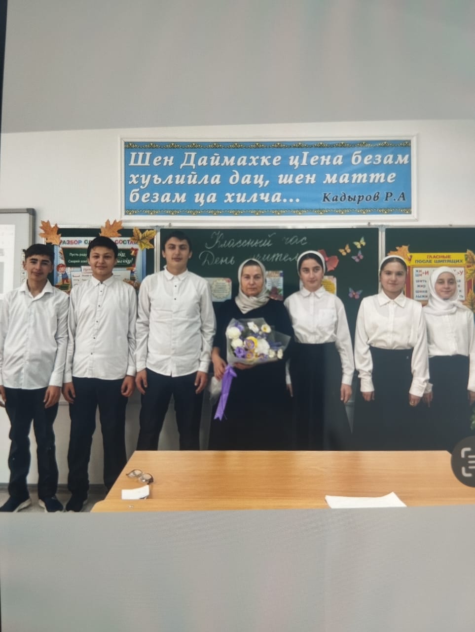 Классный час на тему: "День учителя" провела Билялова Ровзан Абуезидовна. Цель мероприятия воспитывать уважение к профессии учителя, чувство благодарности за его нелегкий труд.