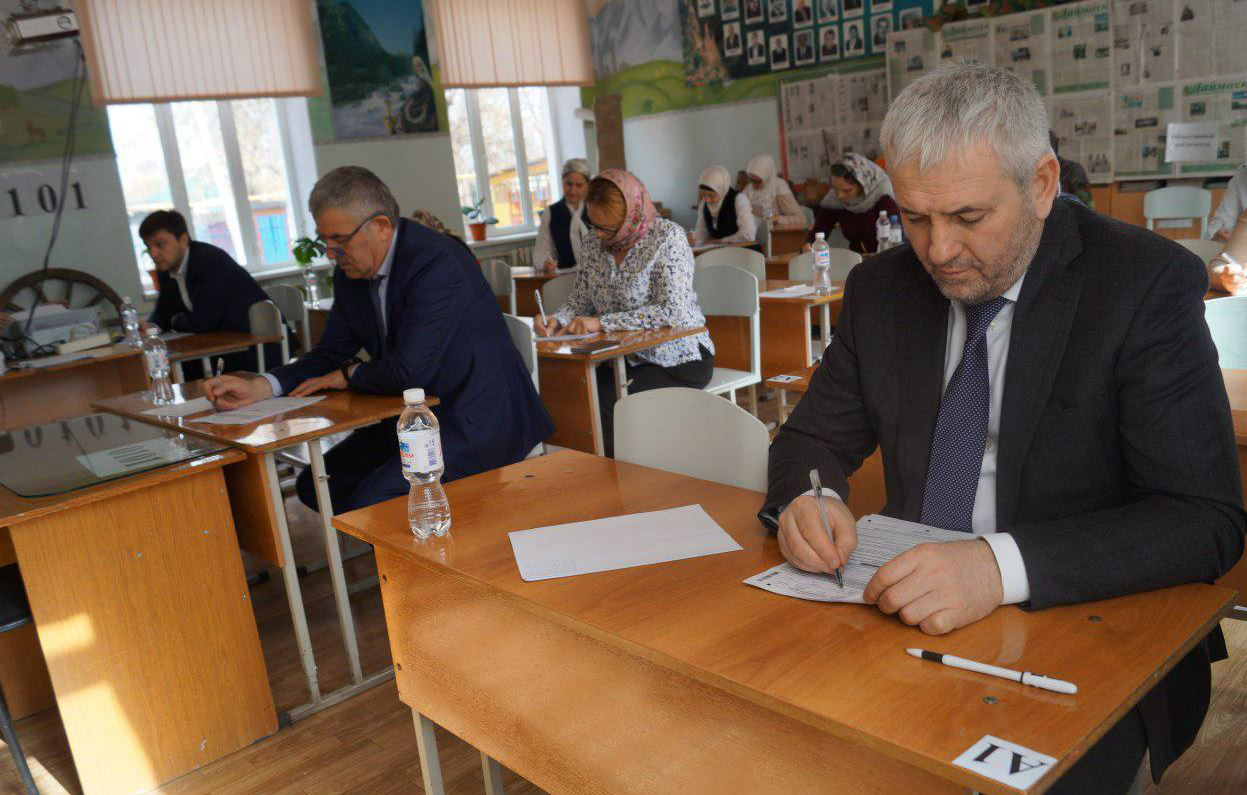 На базе «СОШ №50» г.Грозного прошла Всероссийская акция «Единый день сдачи ЕГЭ родителями», инициатором которой является Федеральная служба по надзору в сфере образования. Вместе с заместителем председателя Правительства Чеченской Республики Шахидом Ахмадовым и родителями выпускников в сдаче ЕГЭ принял участие министр образования и науки ЧР И.Б. Байханов.